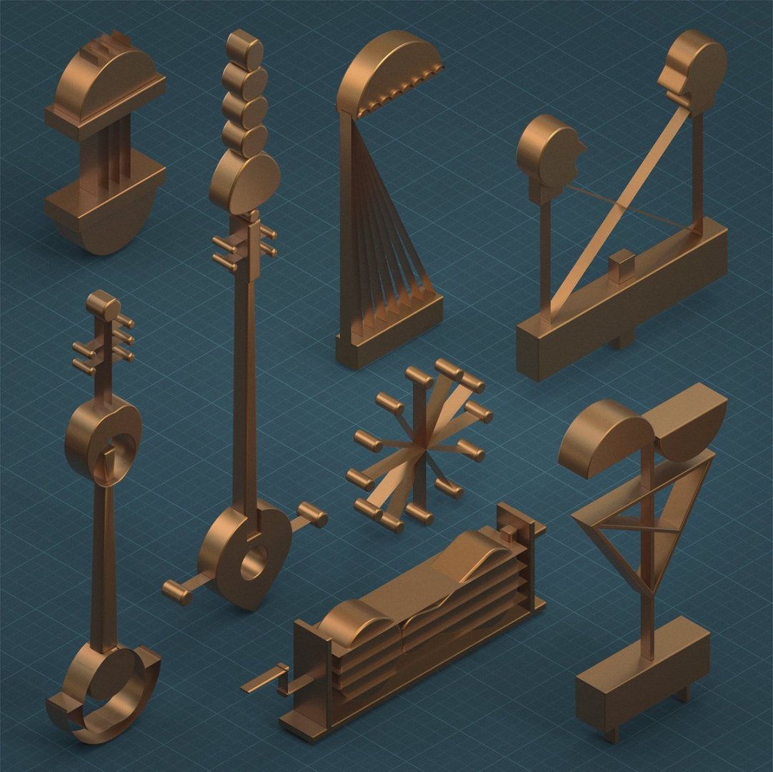 Smetak came to build around 150 acoustic instruments, many of which are true sound sculptures of great visual impact. This latter aspect is the most directly evoked one on this album—and it so happens that the Smetakian spirit tunes in with a new community of contemporary artists, who relate to the work of the so-called “experimental luthiers”, artists who build their own instruments (Marco Scarassatti, Phillipp Laeng, Maria Anália), lead them towards radical extended versions (Ruben Dhers, Claudio Merlet), develop hybrid projects involving instruments and sound sculpture (Javier Bustos, Álvaro Icaza and Verónica Luyo, Juan Pablo Egúsquiza, Edgardo Rudnitzky) or take the exploration towards the building of resonant machines (Nicole L’Huillier, Zimoun, Cod.Act, O Grivo), without these categories being mutually exclusive, but rather tending to mix, thereby opening up new sonic possibilities.